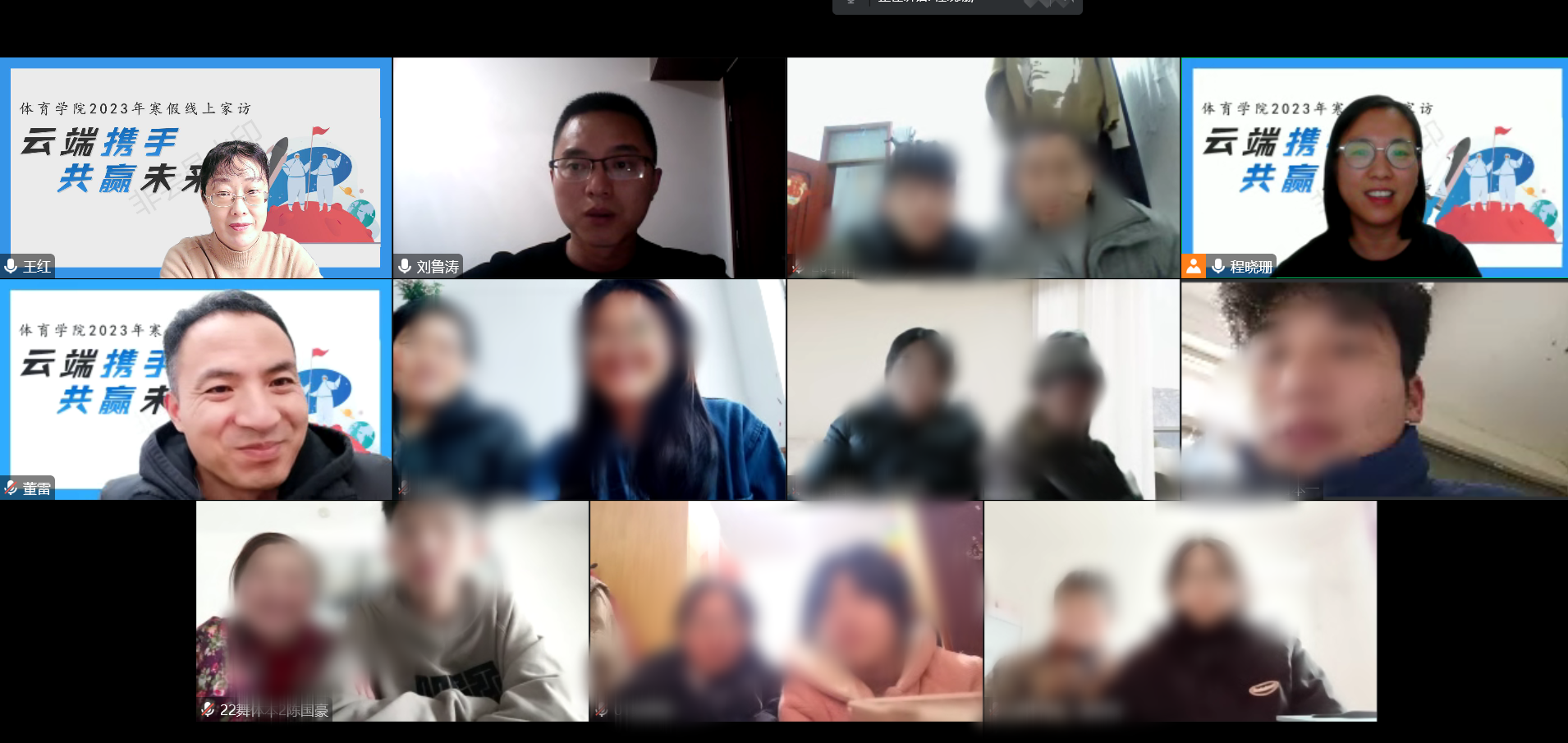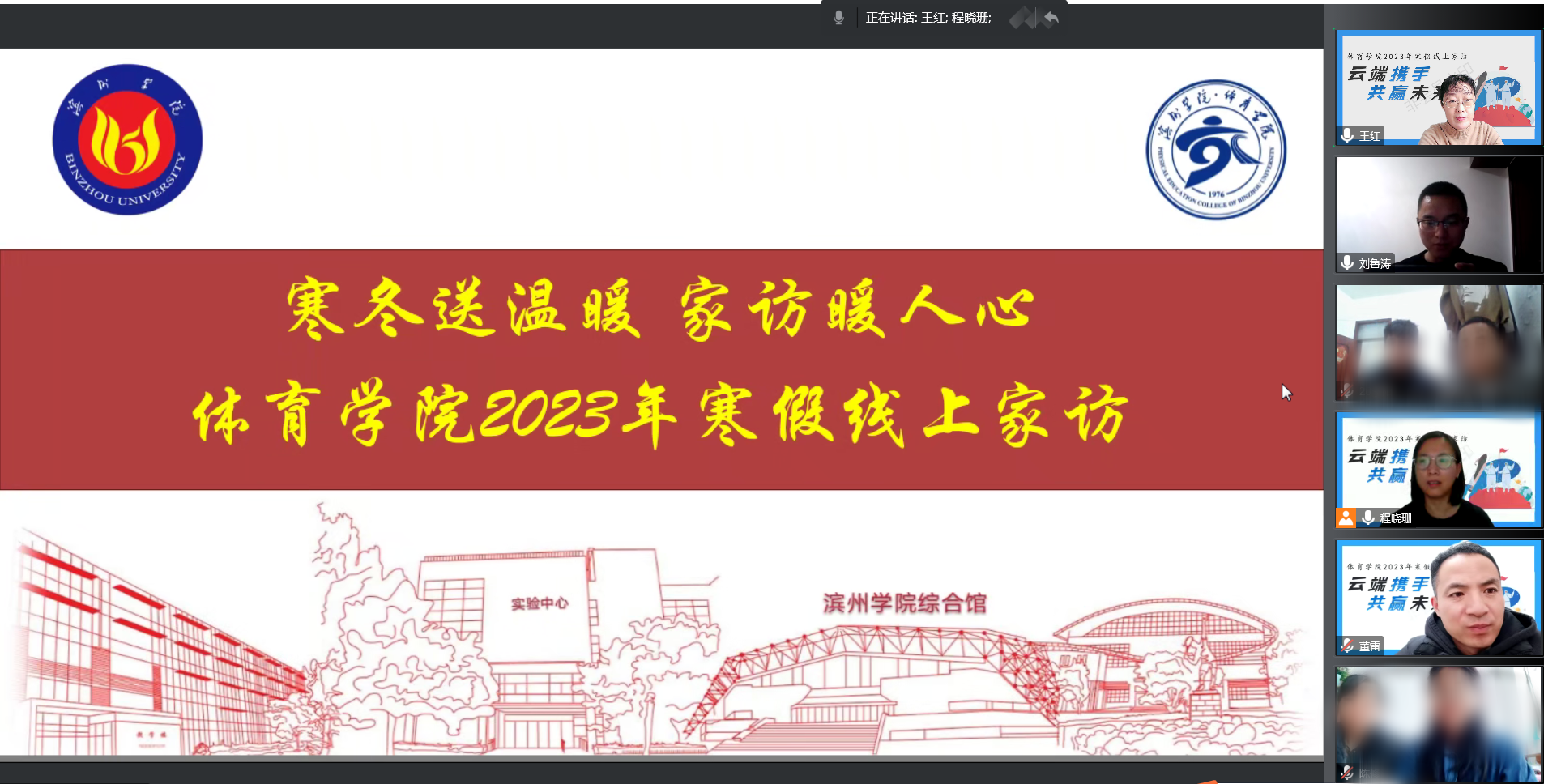 为落实立德树人根本任务,加强家校协同育人,提升思想教育和帮扶工作的精准性与实效性。1月14日上午,体育学院组织开展“寒冬送温暖,家访暖人心。”线上寒假家访活动。参与家访的老师有程晓珊、刘鲁涛、王红和董雷,通过线上会议的方式与学生及家长亲切交流。