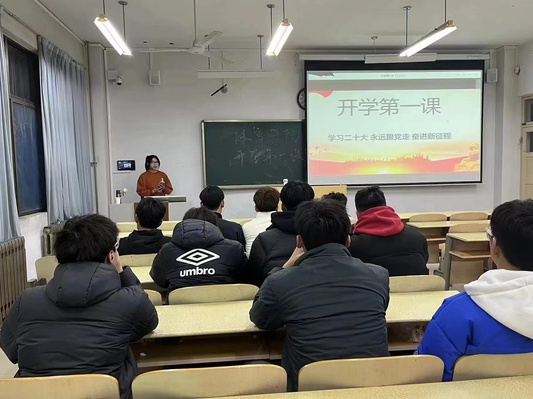 2月19日晚,太阳成集团122ccvip以班级为单位组织开展“开学第一课”主题班会,专业课老师、班主任和辅导员深入班级与青年学生广泛开展谈心谈话,将学习贯彻党的二十大精神作为“开学第一课”的重要内容,引导学生全面准确深入地理解党的二十大精神的深刻内涵,鼓励学生坚定理想信念、涵养家国情怀、砥砺奋斗精神。全体同学们围绕“爱国、奋斗、互助”等关键词,分享了寒假期间自身学习、践行党的二十大精神、立志成长为新时代好青年的思考和实践,生动展示了当代青年将“小我”成长融入“大我”奋斗之中的青春风采。