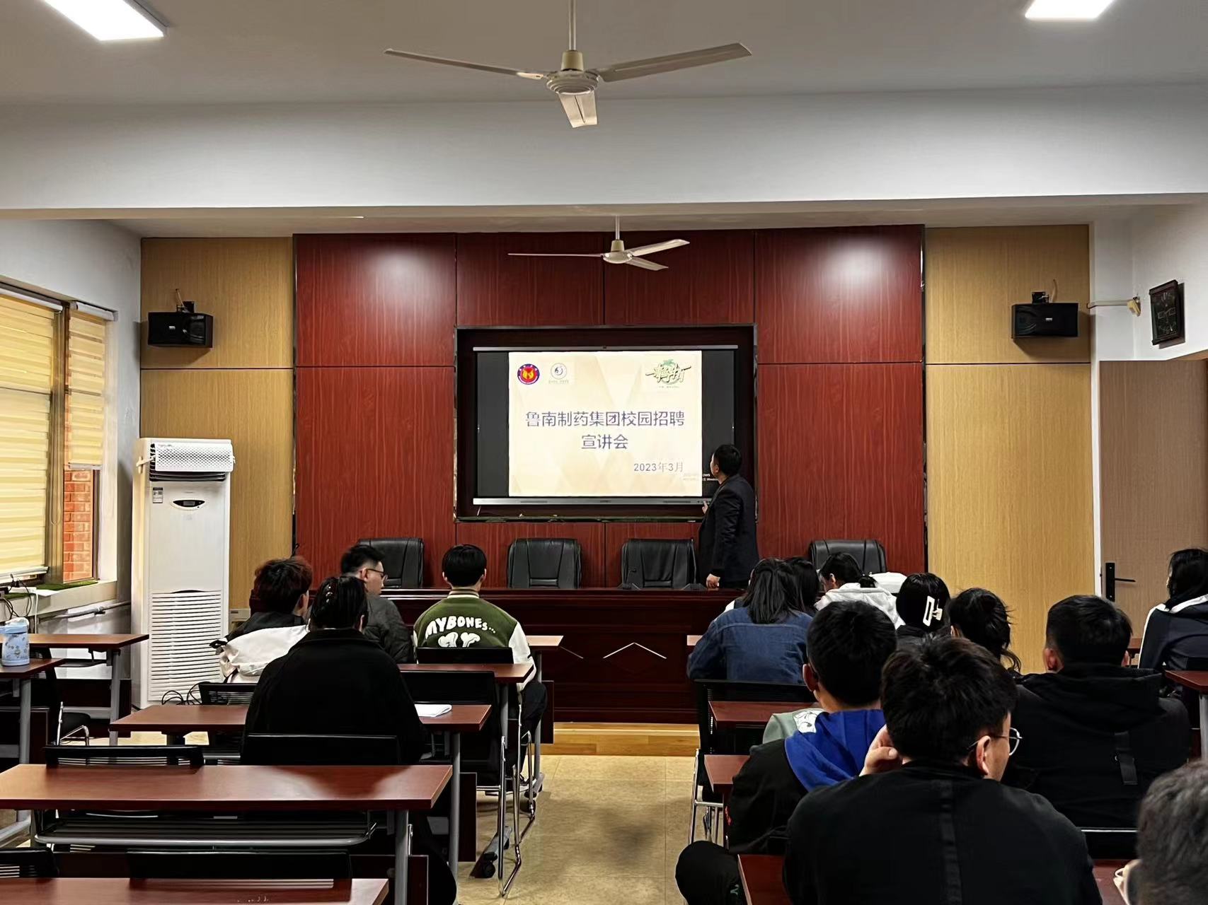 为抢抓春招关键期,全力攻坚促就业, 3月22日,太阳成集团122ccvip在实验楼B7-317会议室举办毕业生双向选择招聘会。鲁南制药集团股份有限公司来我院招聘人才,50余名毕业生参加了本次招聘会。