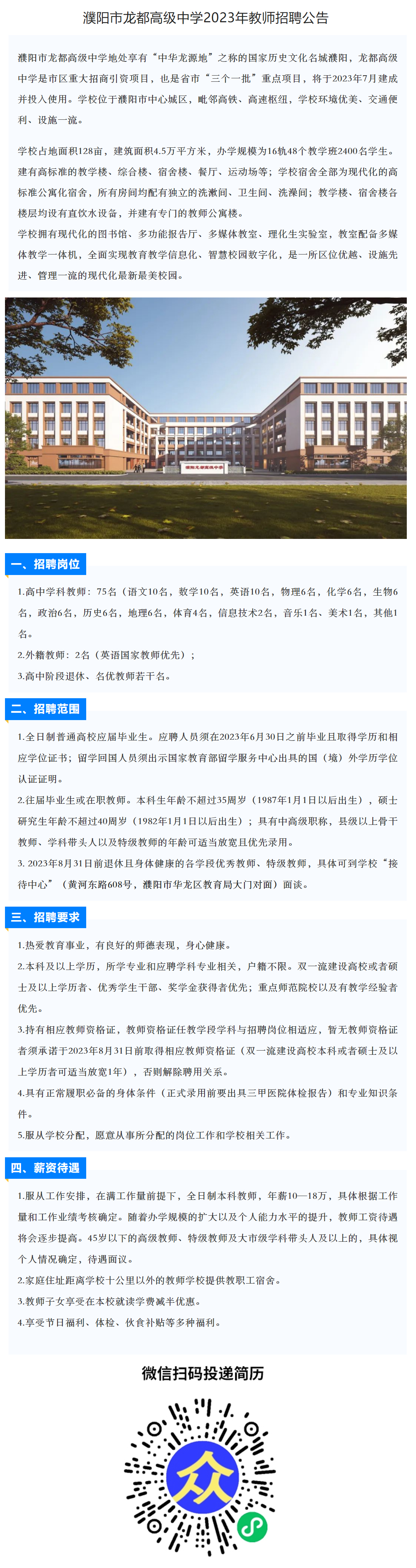 濮阳市龙都高级中学2023年教师招聘公告