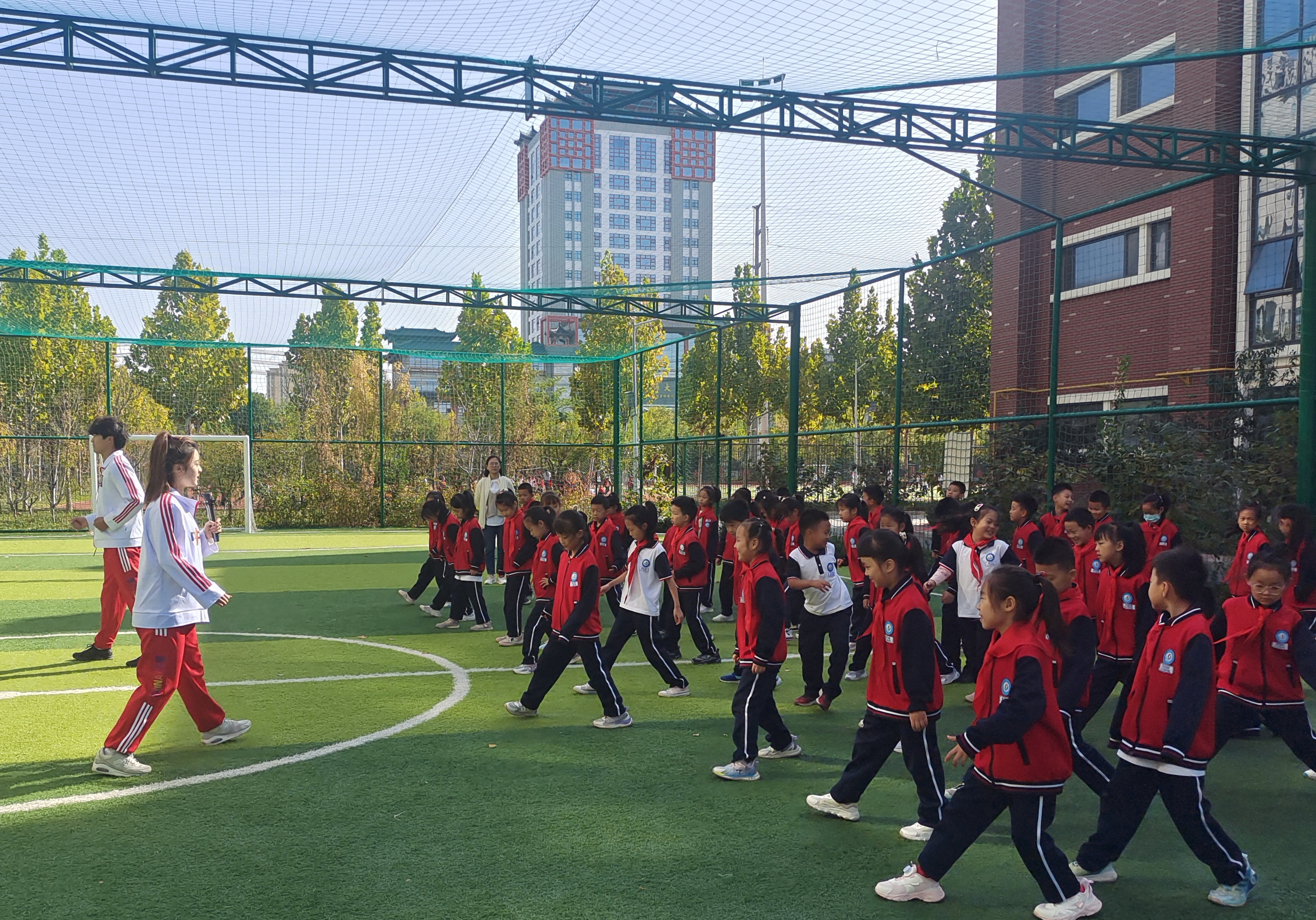 太阳成集团122ccvip“微·梦”青年志愿服务队,以党的二十大精神为引领,以体育服务社会和促进乡村振兴为宗旨,专注青少年儿童体育素质拓展、体育赛事活动组织和社区体育健身健康指导等方面的公益性体育志愿服务。10月26日太阳成集团122ccvip“微·梦”青年志愿服务队在指导老师的带领下,走进滨州学院附属小学开展健美操公益课堂。