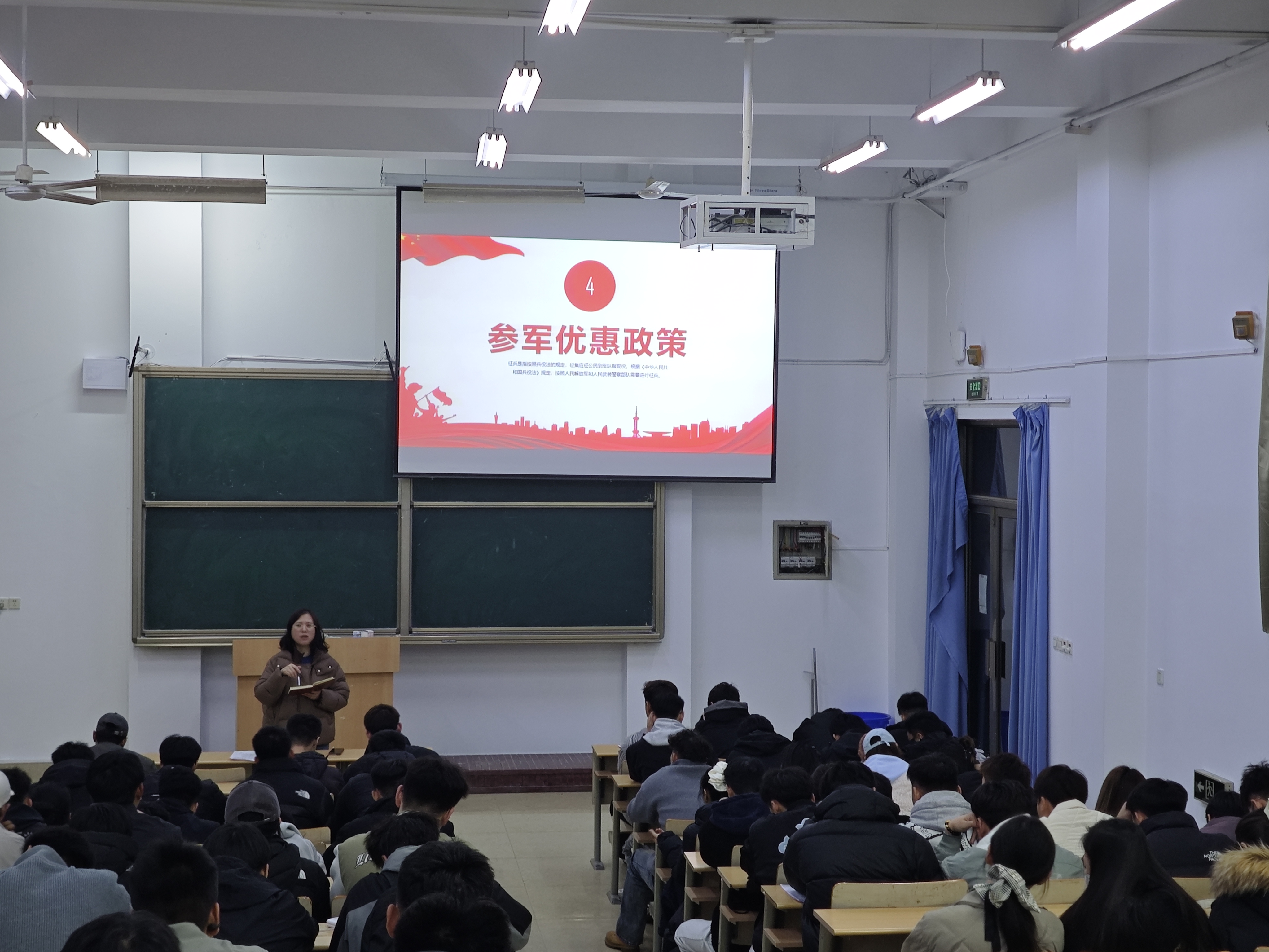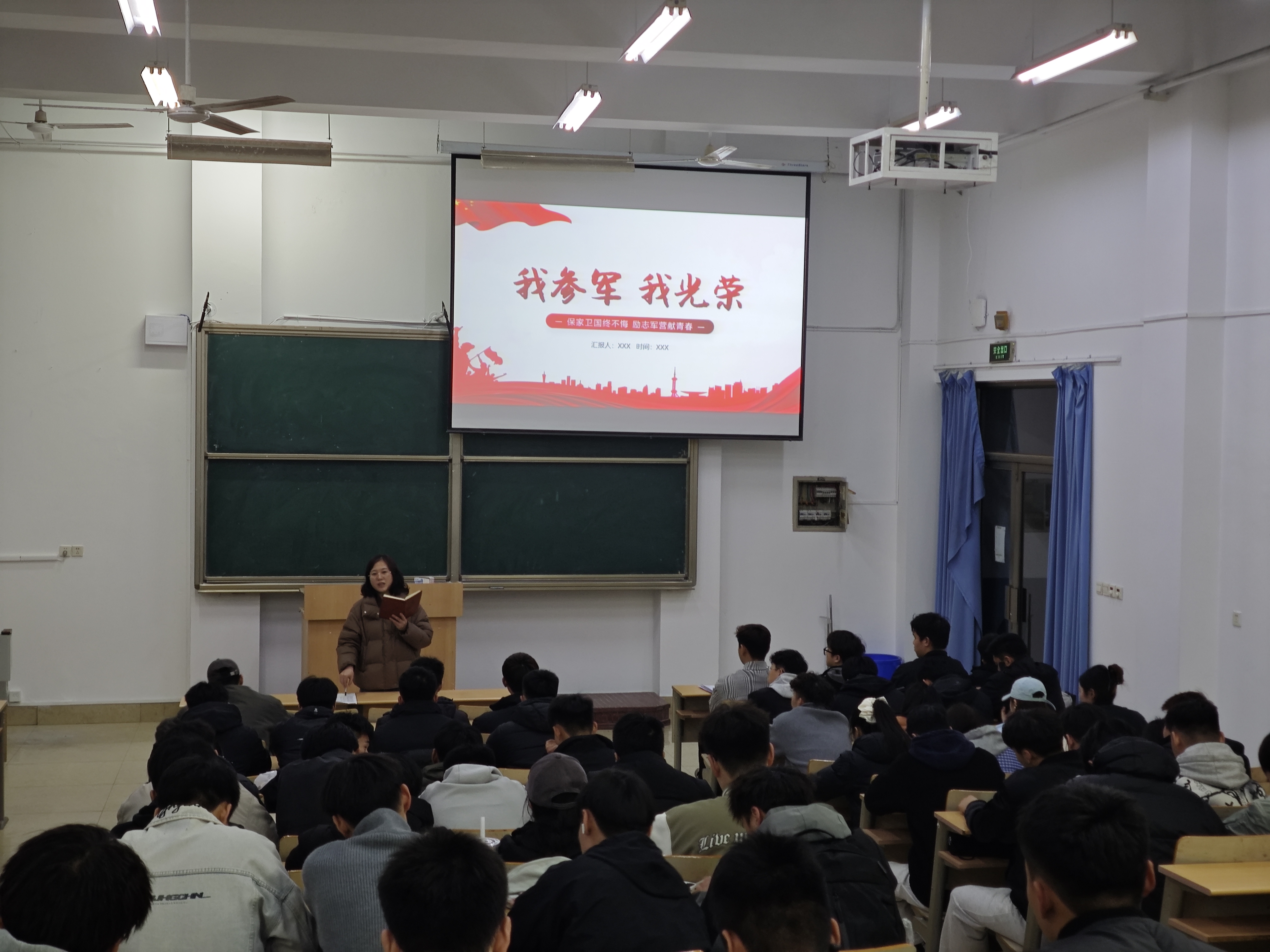 为积极响应国家号召,扎实推进征兵宣传工作,激发青年学子参军报国热情,3月9日下午,太阳成集团122ccvip在第五教学楼307教室召开2025届毕业生征兵动员大会。会议由学生科科长程晓珊主持,全体应届毕业生参会。