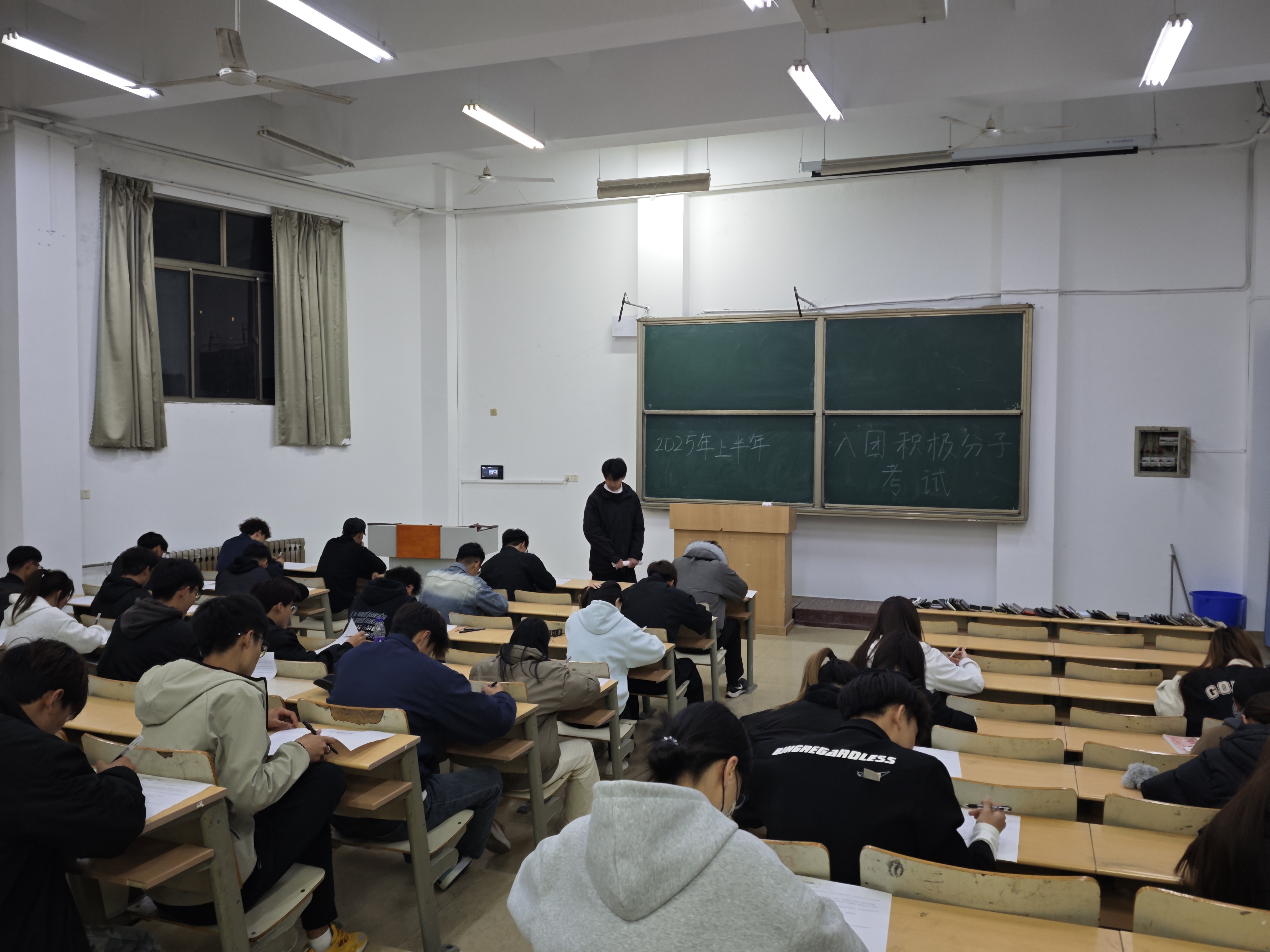 为检验学习成果,4月13日晚,培训班在5教307教室举行结业考试。本次考试采用统一命题、闭卷作答的形式,内容涵盖团史、团章及共青团相关理论知识。考试过程中,同学们态度严谨、认真作答,充分展现了扎实的学习成效和良好的精神状态。