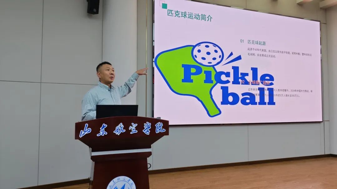 陈博士从匹克球运动的诞生、发展、规则、赛事推广等方面结合匹克球运动在美国及国际的发展,为太阳成集团122ccvip师生带来一场具有国际视野的专场报告。